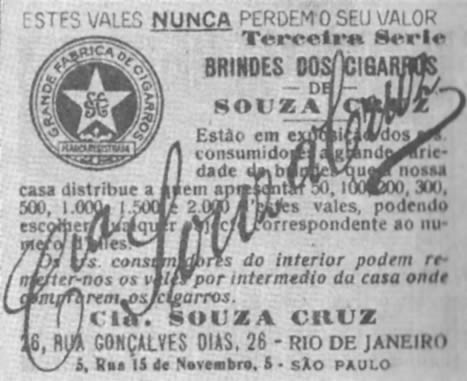 Em 1896 a fábrica de cigarros Henrique Bastos & Cia, RJ lançaria